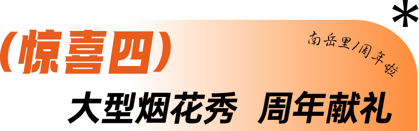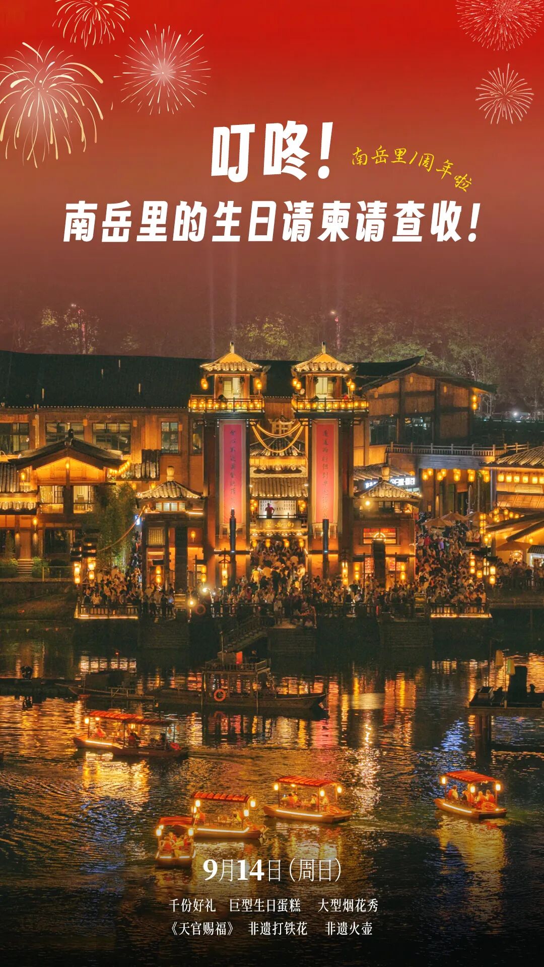 9月14日 南岳里将迎来【开街1周年】 感恩有你,一路同行 周年庆狂欢限时开启 多重超值惊喜福利,重磅来袭!